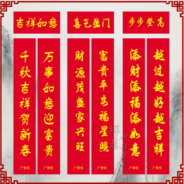 同類詞相對是對仗的基本原則。在曹雪芹所作的 第五回中有一副對聯(lián)非常工整,即“假作真時真亦假,無為有處有還無”。該聯(lián)“真”和“假”、“有”和“無”都是高度抽象的哲學(xué)名詞。“作”和“為”是詞意相近的動詞。“時”和“處”在語法上是副詞,在字面上“時”又可理解為時間,“處”又可理解為空間。“亦”和“還”在字面上是詞意相近的副詞,在語法上可視為省略了動詞的“是”。但必須了解其中還有句內(nèi)自對自重,“真”對“假”、“有”對“無”是反對,而且都重用一次,這才是此聯(lián)的精華所在。春聯(lián)印刷廠 專業(yè)加工定制廣告春聯(lián)、廣告對聯(lián)、春聯(lián)廠家、對聯(lián)廠家,m.bnftcmc.cn
